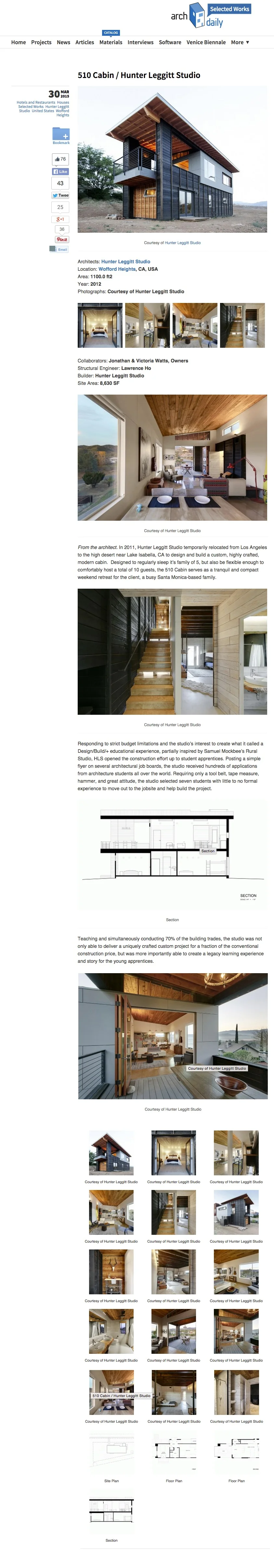 510 Cabin project featured on the widely read, Spanish architecture publication, ArchDaily.
